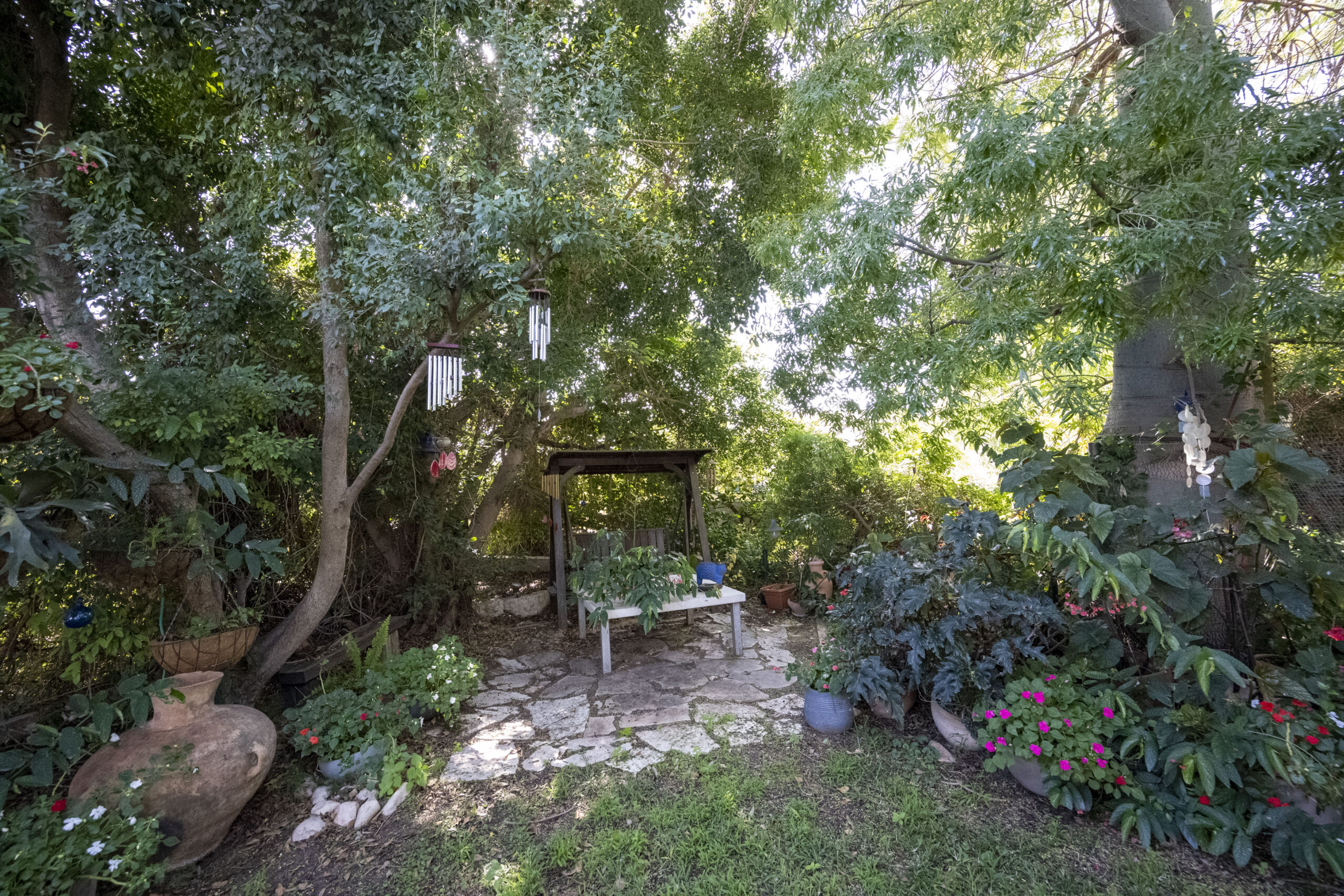 Lush garden with fruit trees